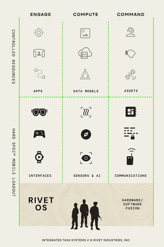 No one knows your critical tasks like you do. Rivet composes modular systems for your priorities. Rivet Hard Spec™ technologies, including body-borne interfaces, sensors, edge AI, and secure communications, are designed for interoperability in the toughest conditions.